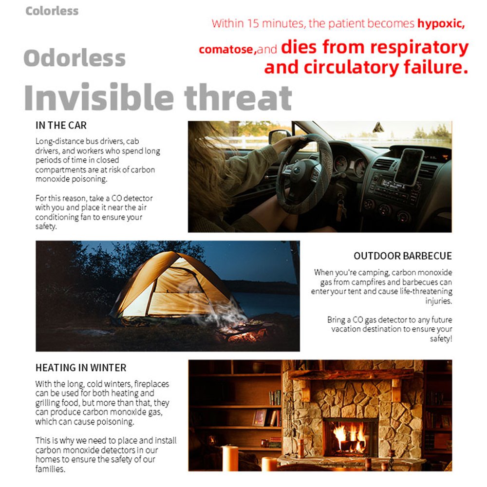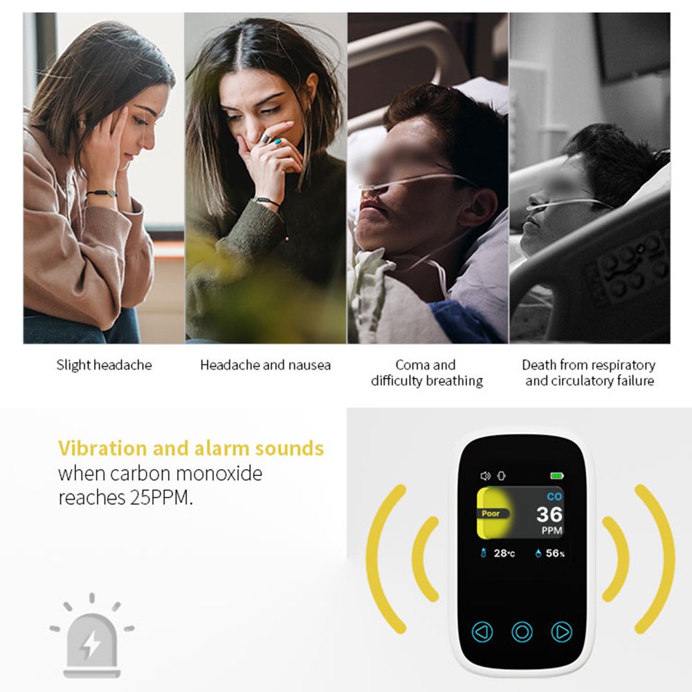 This compact monitor delivers comprehensive environmental awareness through three essential metrics. It precisely tracks Temperature and Humidity levels, helping you maintain ideal comfort while preventing mold growth and protecting your belongings from moisture damage. Most importantly, it continuously monitors Carbon Monoxide (CO) levels – an odorless, colorless gas that poses serious health risks. With this detector, you gain immediate visibility into potential CO threats, receiving clear alerts when concentrations approach concerning levels, giving you precious time to respond and ventilate your space.
