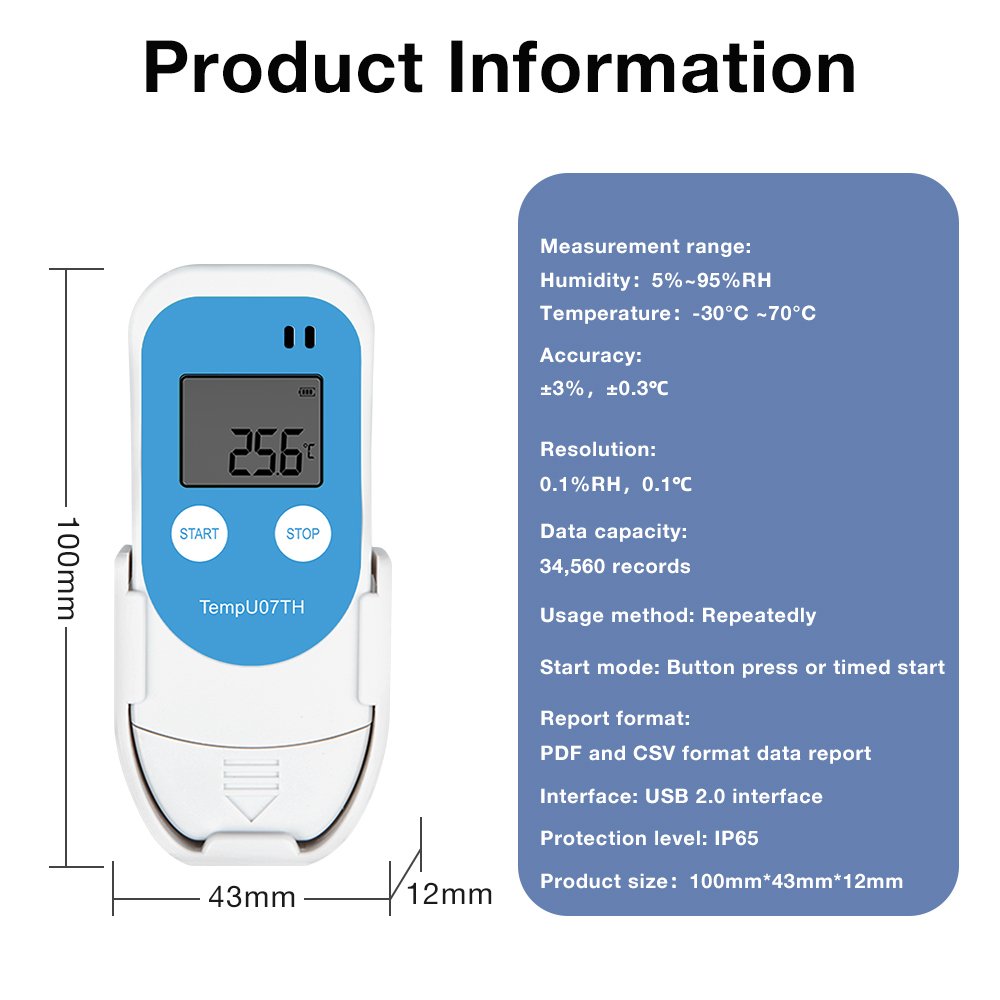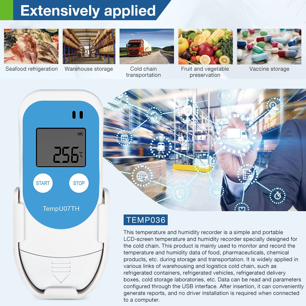 This compact logger is essential for quality control in industries such as cold chain logistics, pharmaceutical storage, food production, and agricultural research. It ensures perishable goods are transported and stored within specified limits, validates storage conditions for sensitive materials, and monitors industrial or laboratory environments.