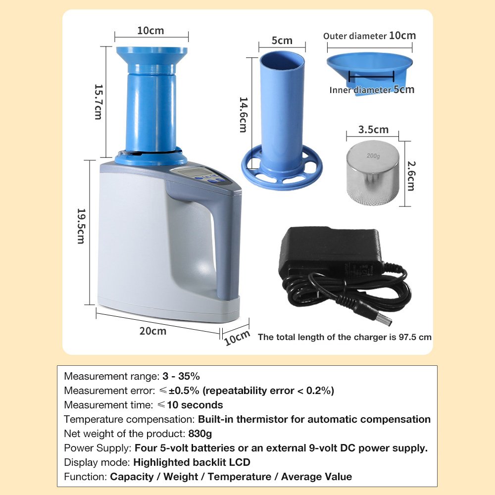 This advanced grain moisture meter is an essential tool for farmers, agronomists, and grain processors. It is engineered to provide fast, accurate, and reliable moisture measurements for up to 35 different grain types, including major crops like wheat, corn, rice, barley, soybeans, and many more.