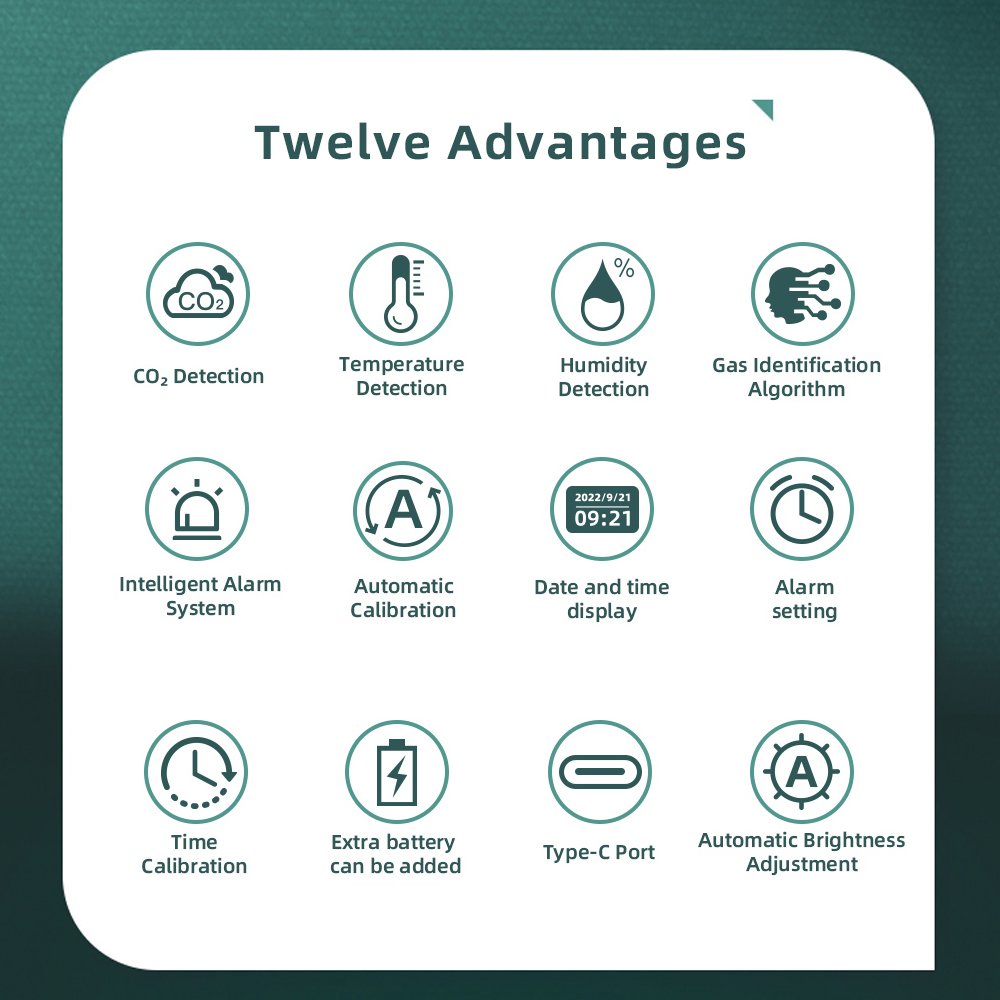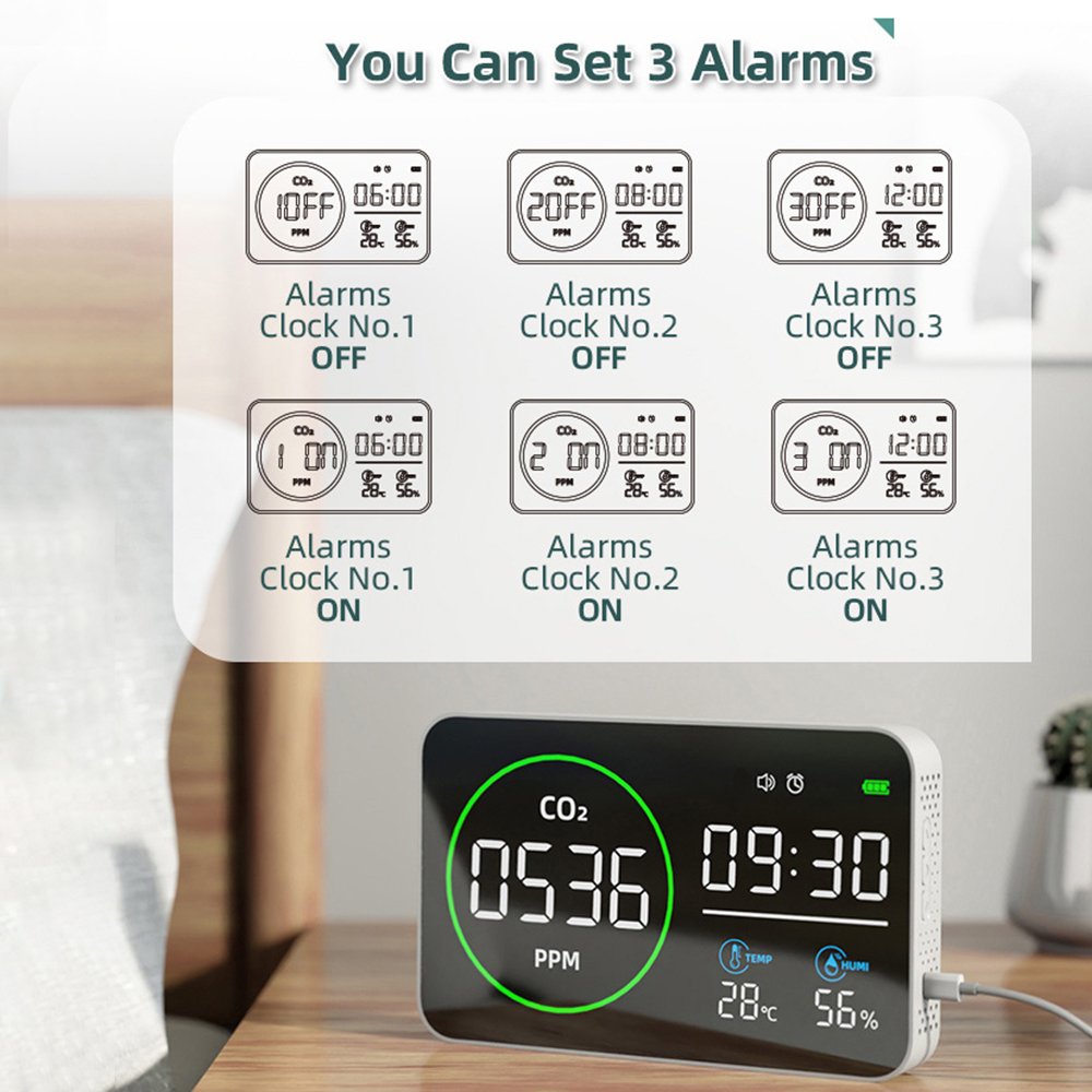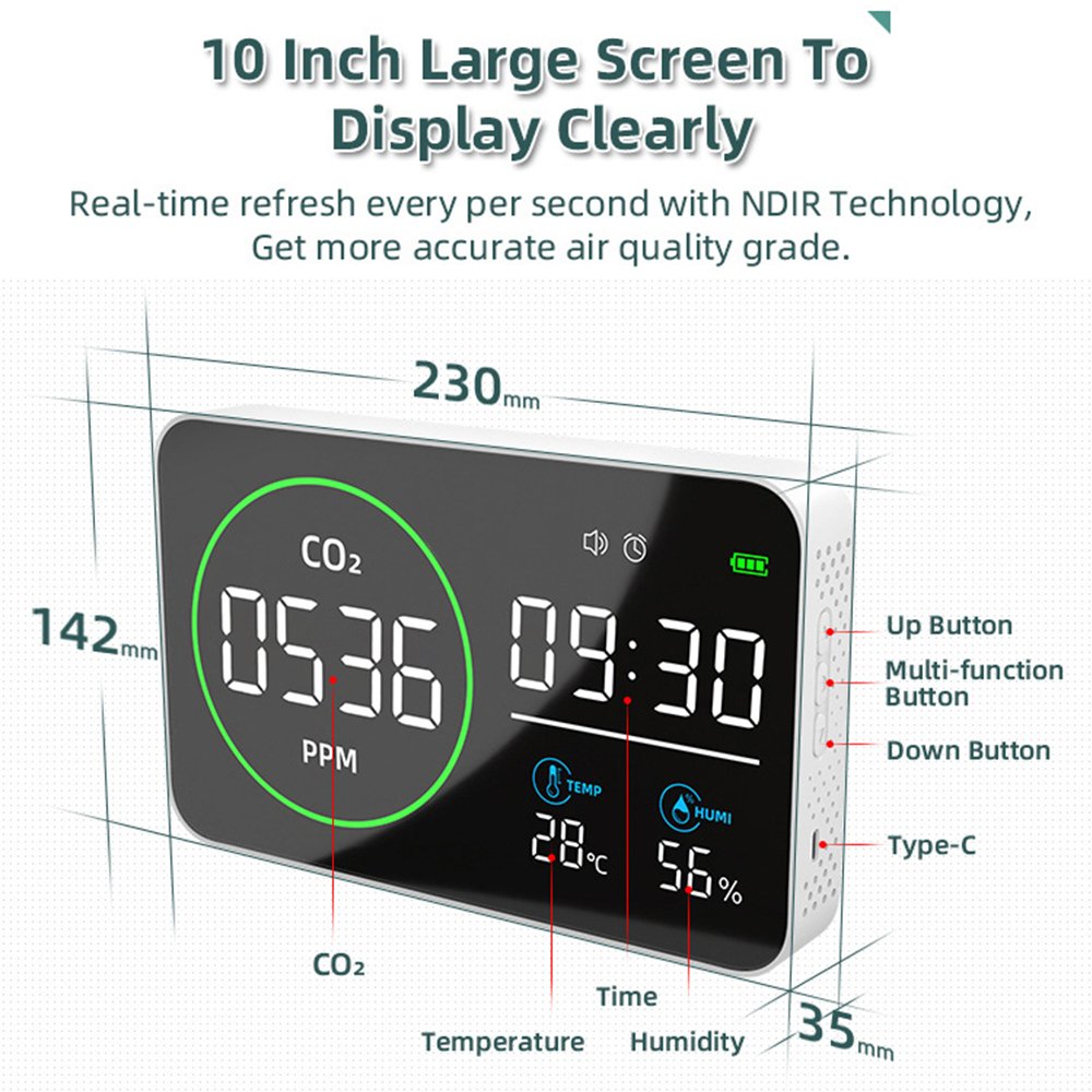 This powerful monitor provides immediate, at-a-glance insights into the core elements of your environment. It accurately tracks Carbon Dioxide (CO2) levels, a critical and often overlooked metric; high concentrations can lead to drowsiness, headaches, and poor concentration, signaling that a room desperately needs fresh air. Simultaneously, it keeps you informed of the Temperature and Relative Humidity (HUMI), helping you avoid discomfort, prevent mold growth, and manage energy costs efficiently. Beyond the environment, it serves as a practical TIME display, seamlessly integrating into your daily routine as a elegant desk or bedside clock.