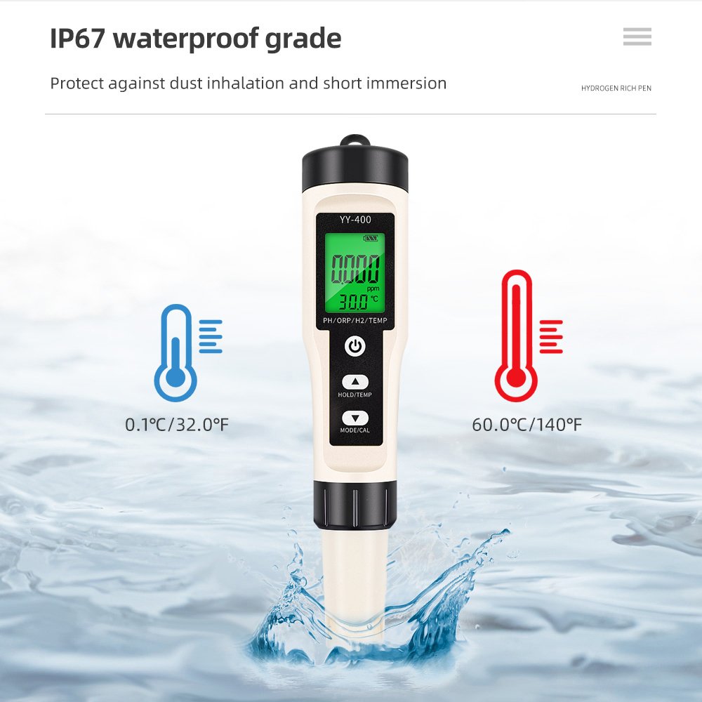 4-in-1 Functionality: Simultaneously measures Temperature, ORP, pH, and H2 levels.