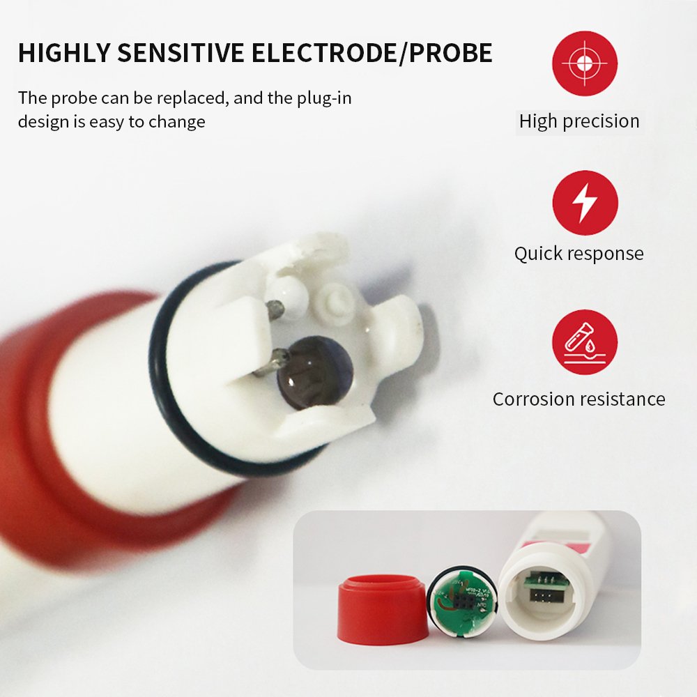 Key features include a large backlit LCD screen for clear visibility in any lighting condition and Automatic Temperature Compensation (ATC), which ensures that your pH and EC readings are consistently accurate regardless of water temperature fluctuations. The device is designed for user-friendly operation with just one button for calibration and function switching. Its portable design makes it perfect for on-the-go testing, from your kitchen to your garden.