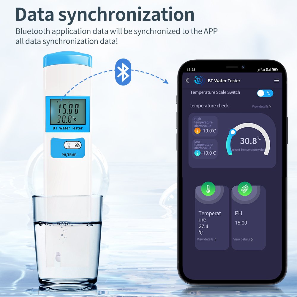 Introducing the next generation of water testing—the Bluetooth 2-in-1 pH/TEMP Water Quality Tester, engineered for professionals and enthusiasts who demand accuracy, convenience, and connectivity. This advanced device seamlessly combines pH and temperature testing in a single, ergonomic tool while integrating Bluetooth technology to revolutionize how you track and analyze water quality.