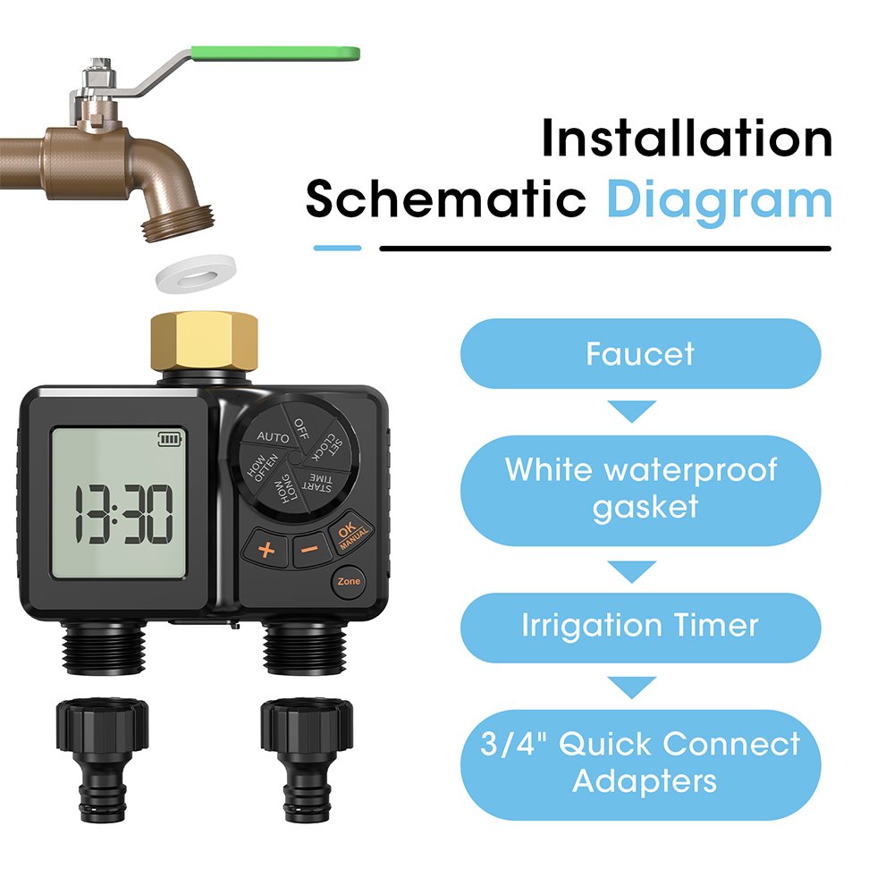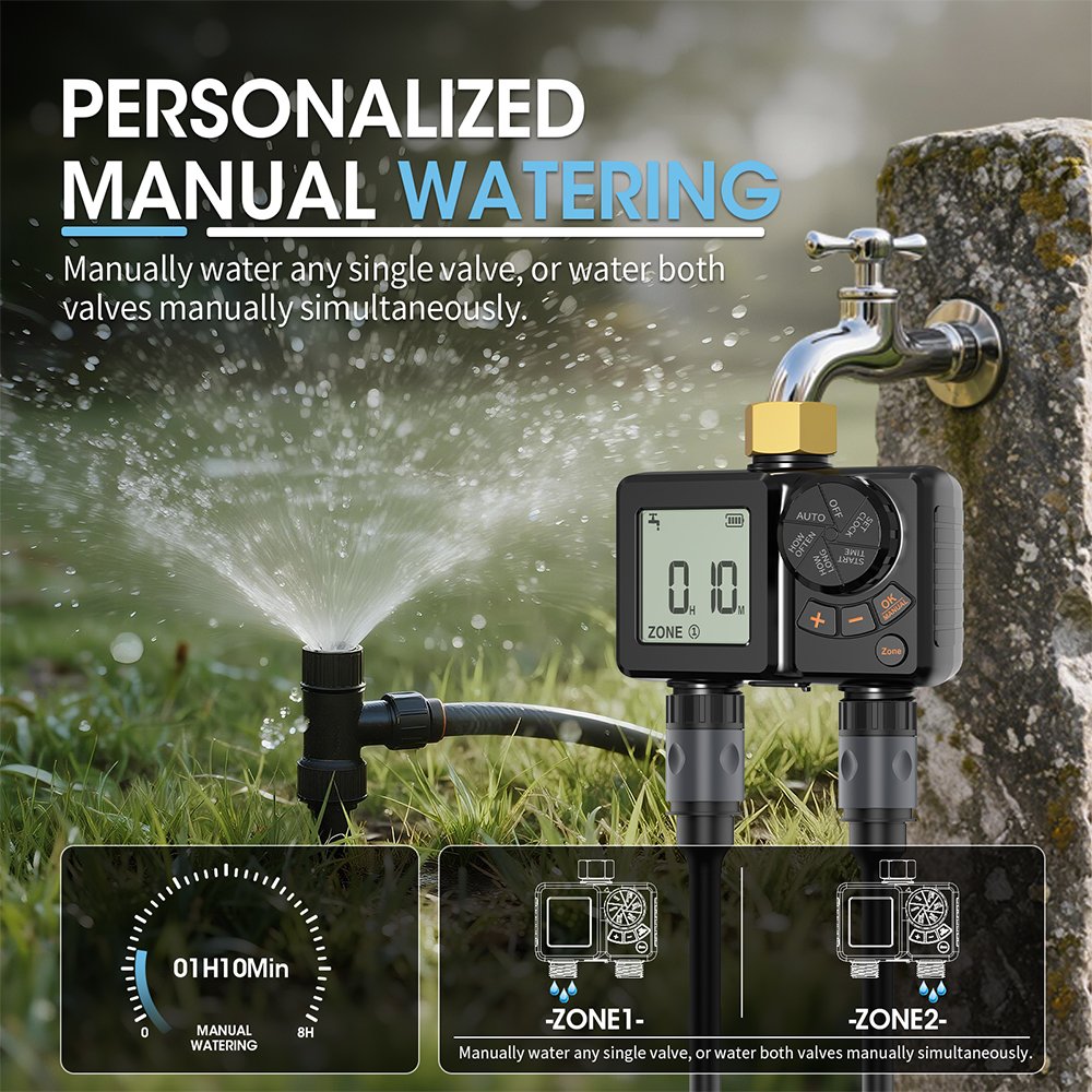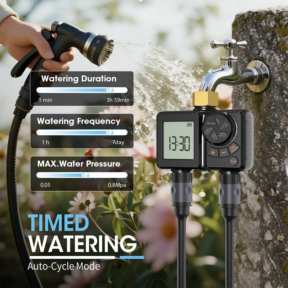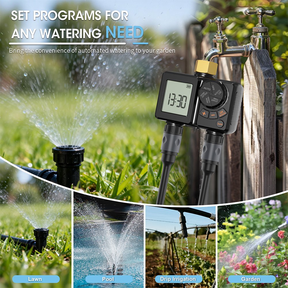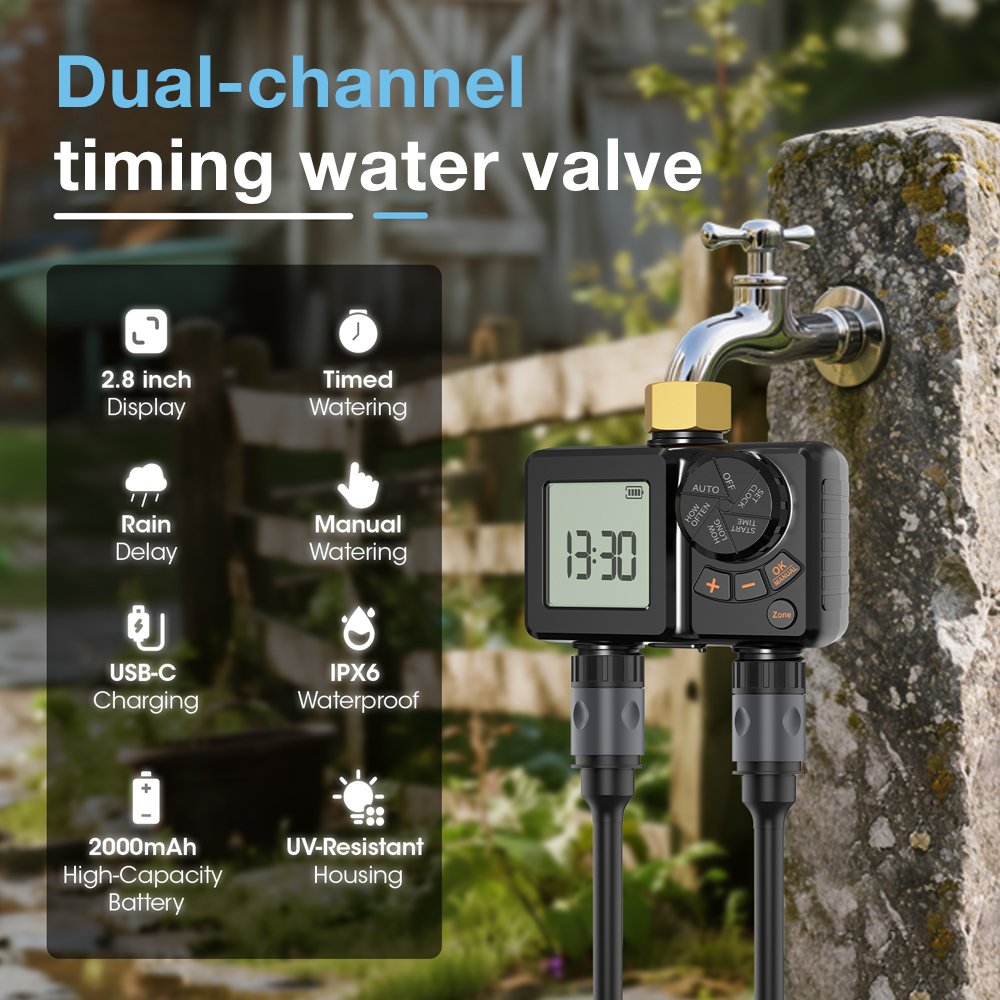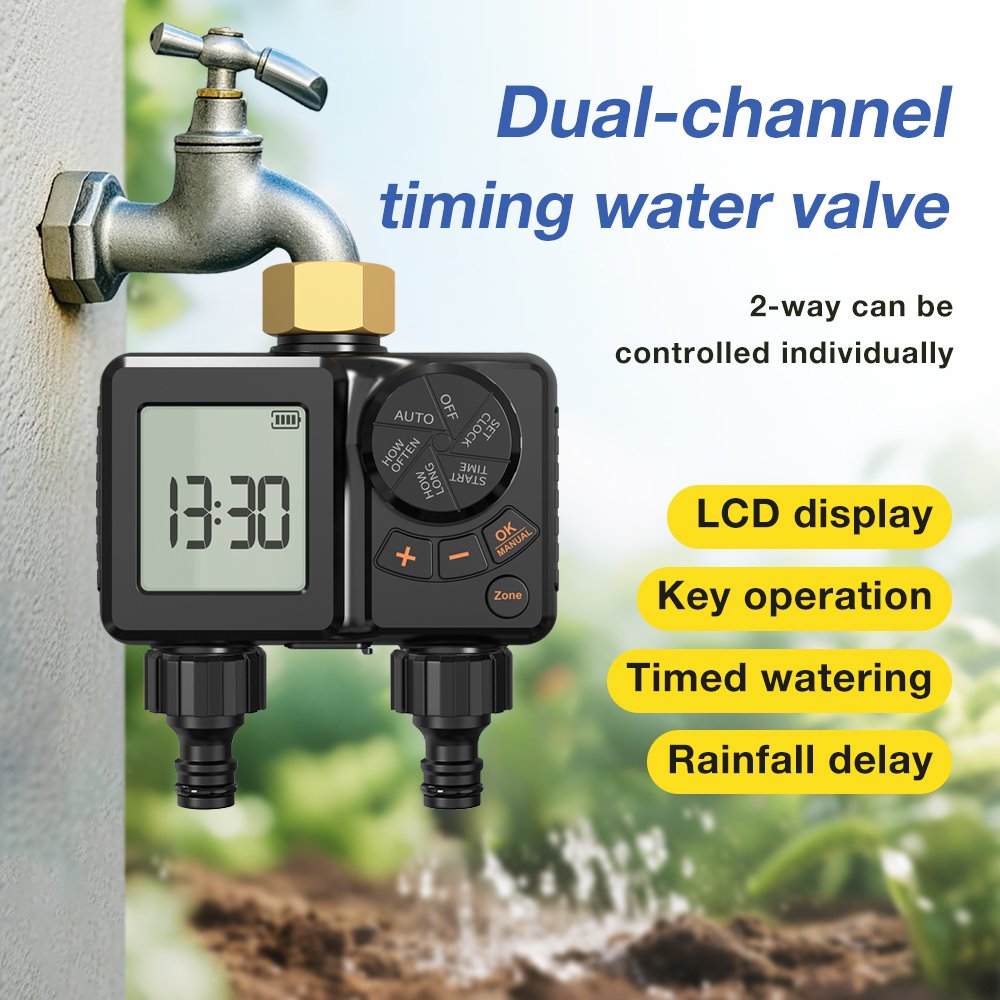 Professional Dual-Channel Timing Water Valve: A reliable tool for precise water flow control and timing, designed for labs, factories, and industrial applications. Featuring dual independent channels, it allows separate timing and flow adjustment, meeting diverse water control needs in different scenarios.