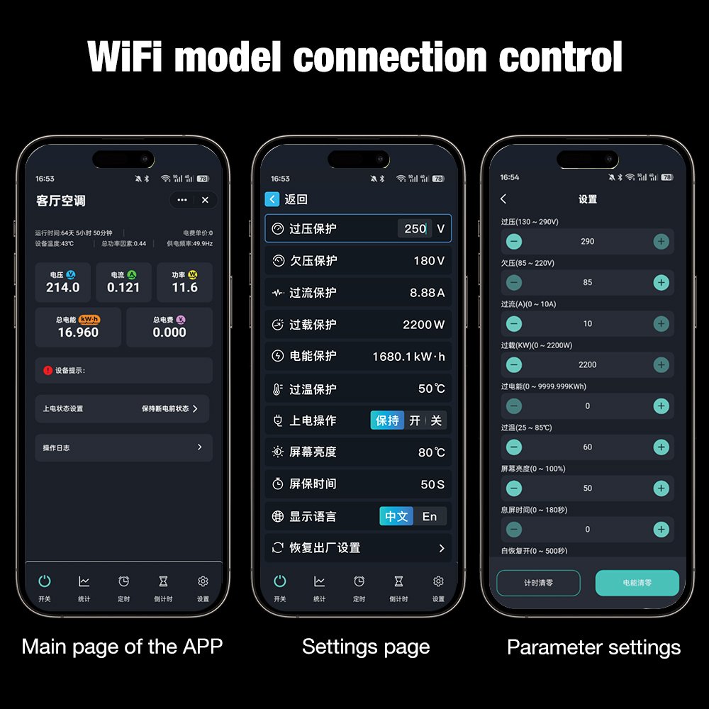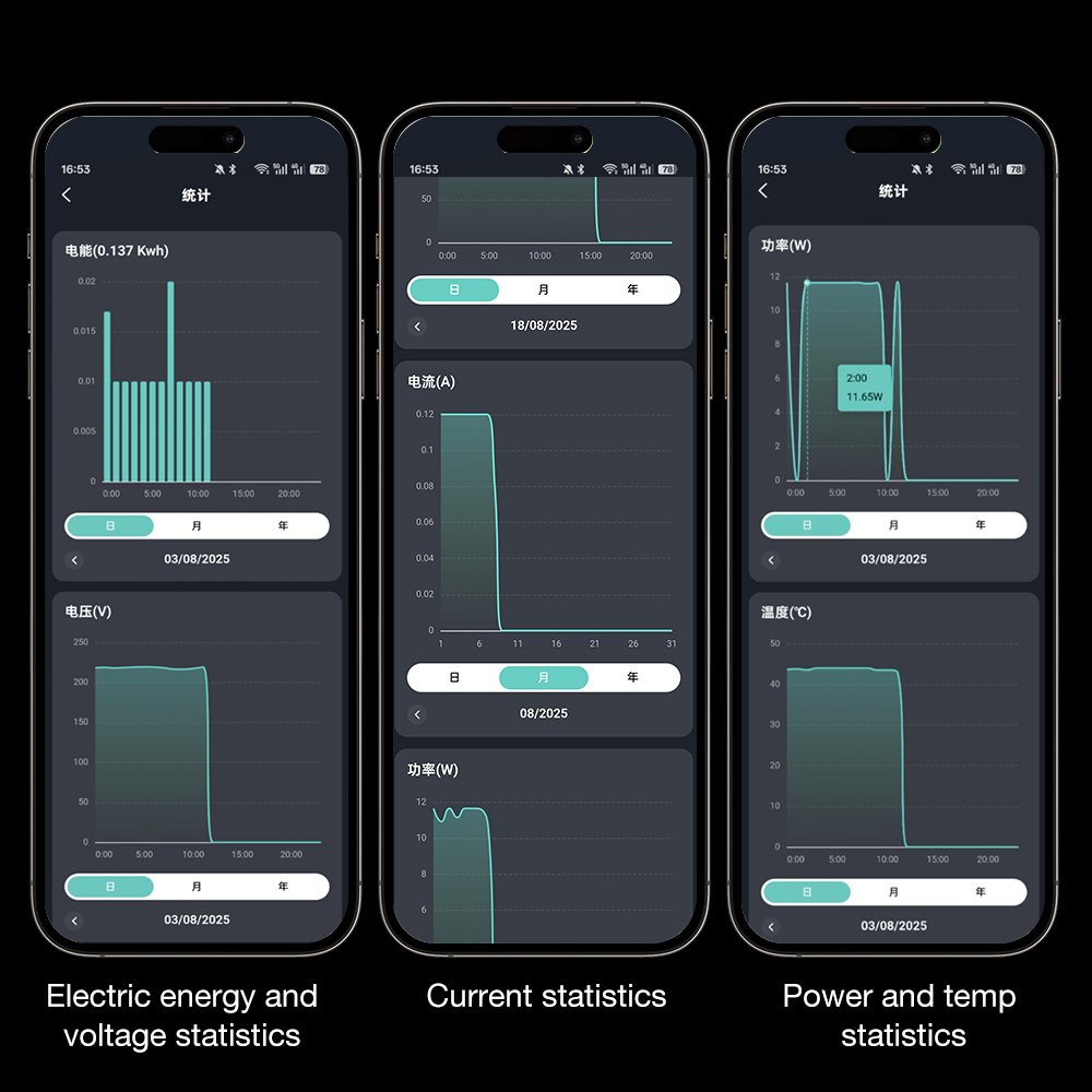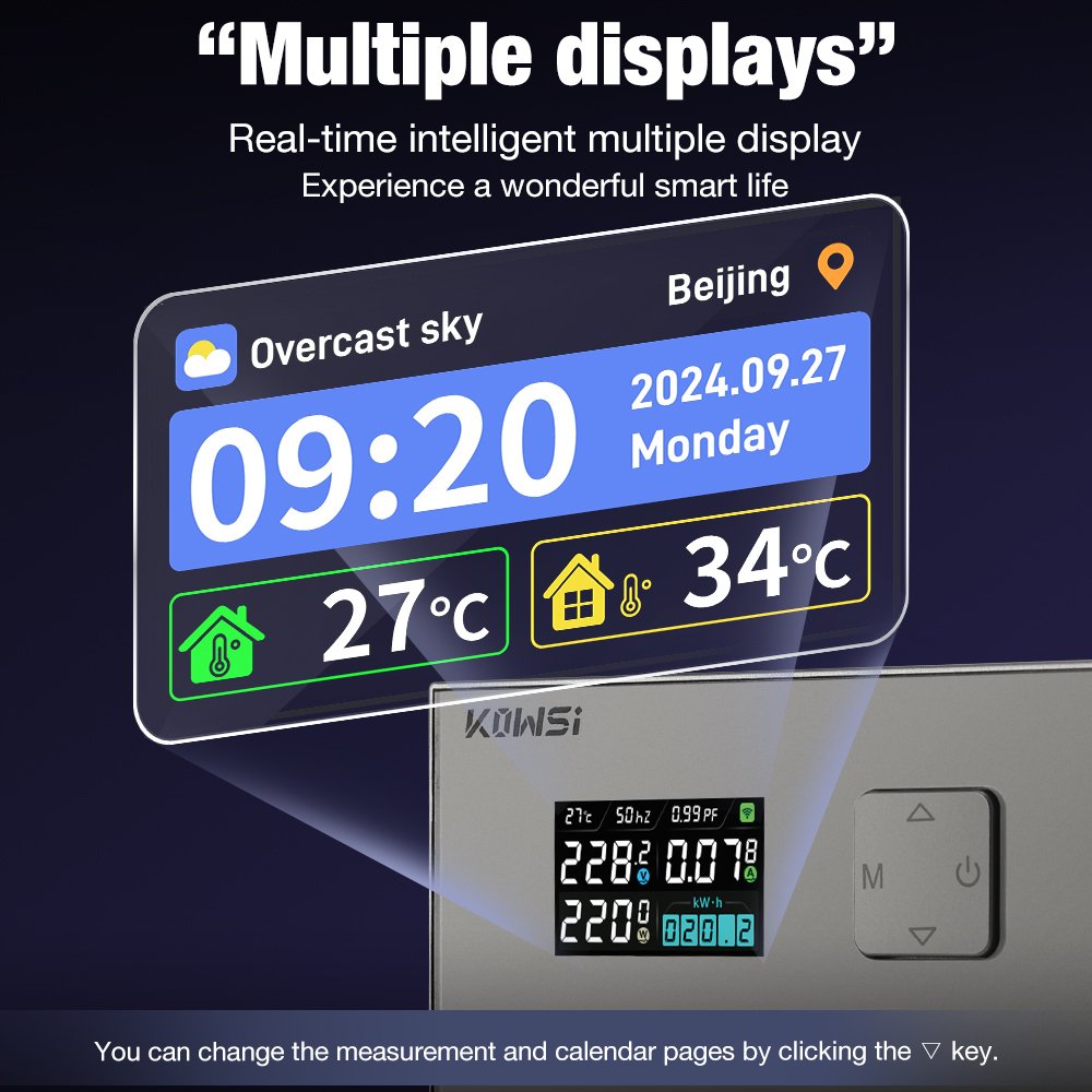 Real-Time Power Monitoring: The socket accurately measures key electrical parameters, including voltage, current, power (W), and cumulative energy consumption (kWh). This data is displayed directly on its built-in LCD screen, offering immediate visibility into how much energy a connected device is using.