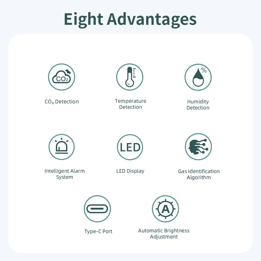 • Accurate 3-in-1 Monitoring (CO2, Temperature, Humidity)
