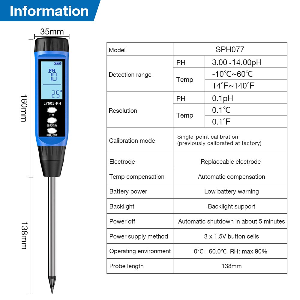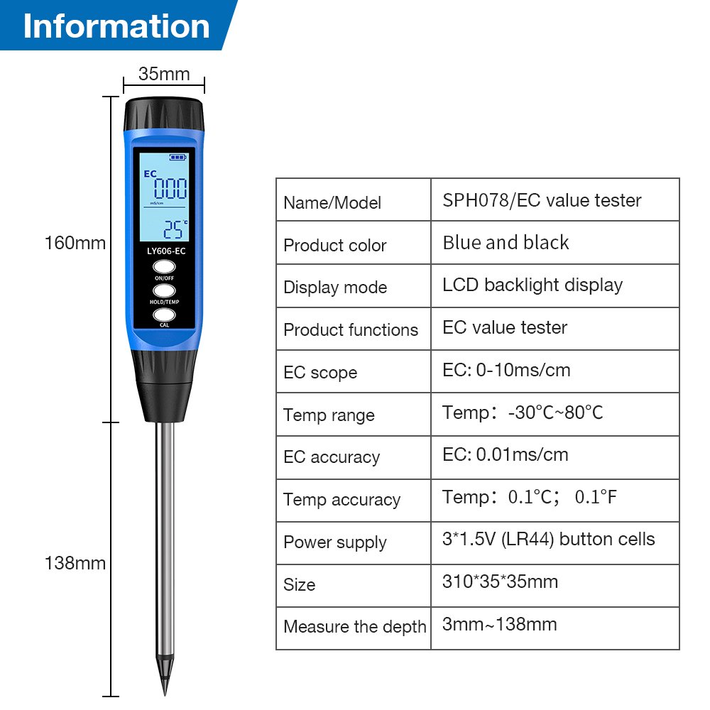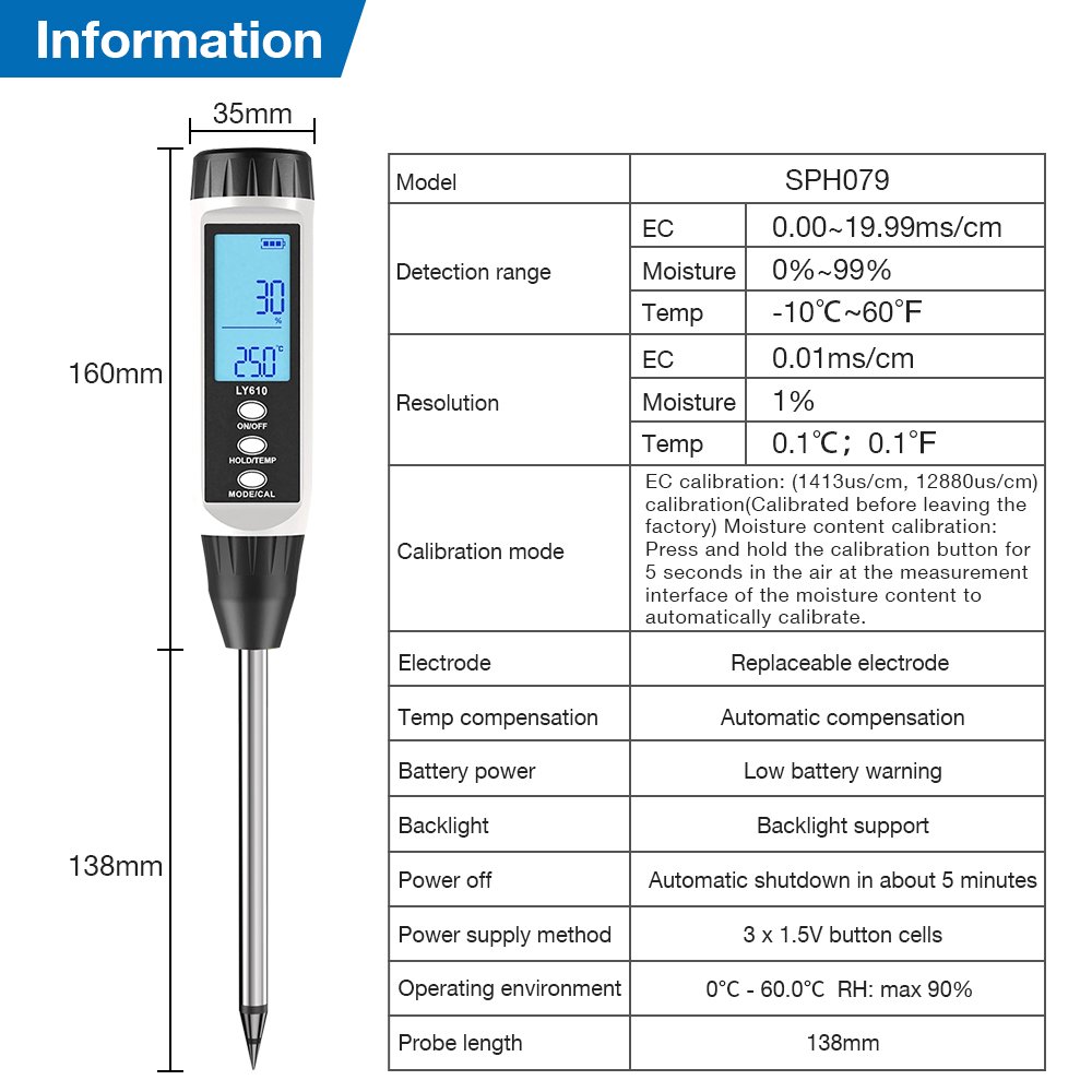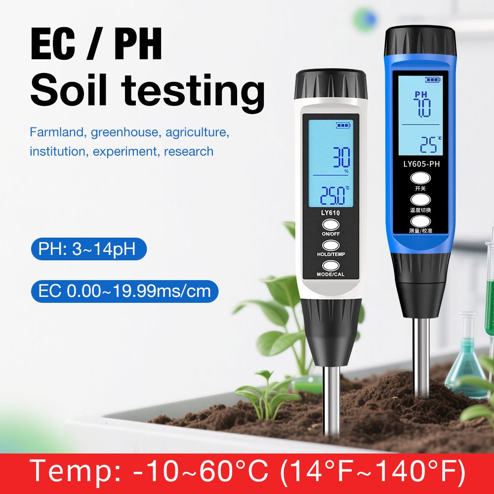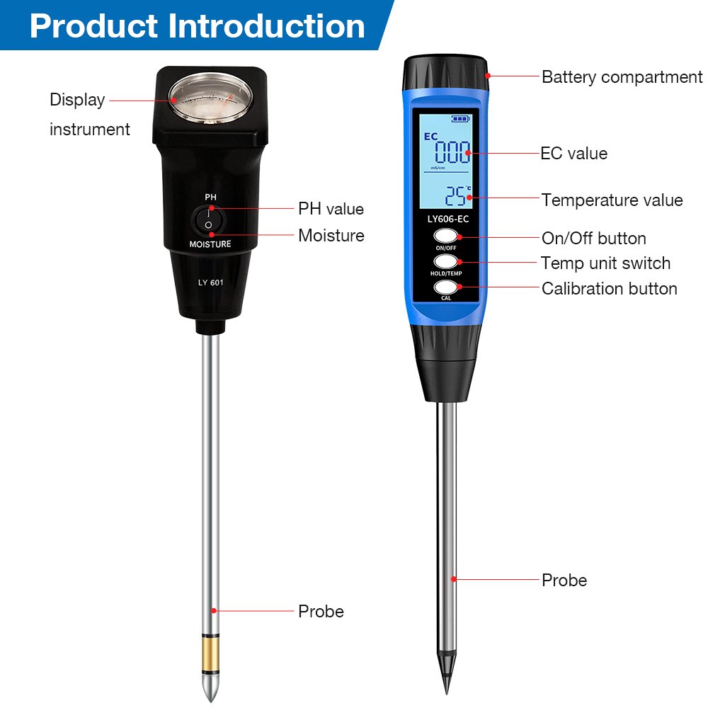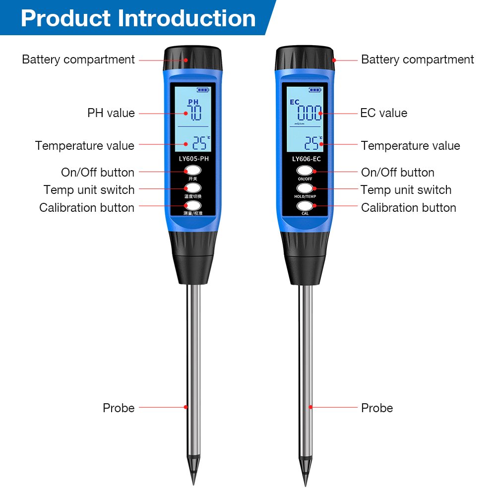 Make informed decisions for watering, fertilizing, and soil amendment. Nurture your plants based on solid data for a healthier, more vibrant garden. The PH + EC Display Soil Testing Kit—your key to unlocking your soil’s full potential.
