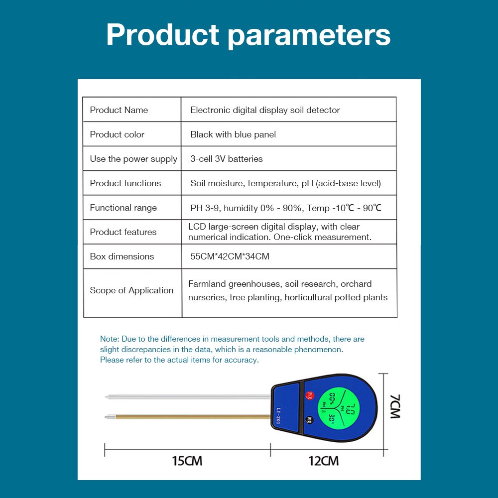 The PH Temp Humidity Soil Detector is an advanced, multi-functional device designed for modern agriculture, gardening, and environmental monitoring. It integrates four key sensors into a single, portable tool to provide comprehensive soil analysis.