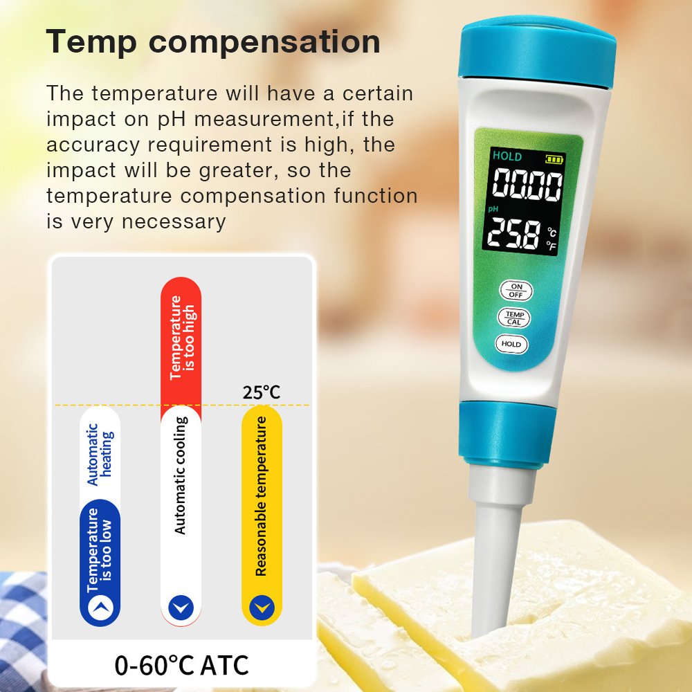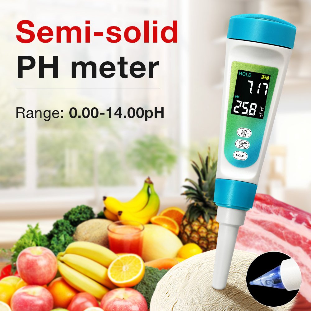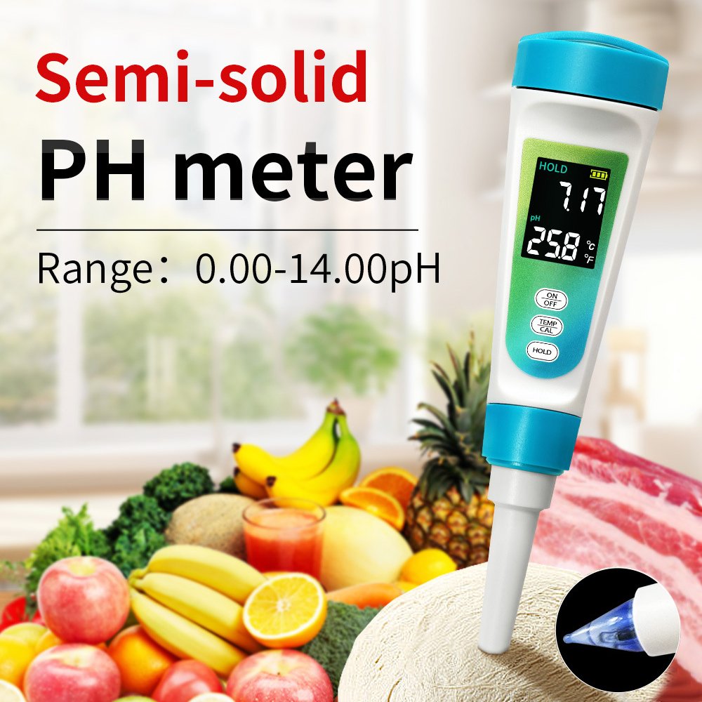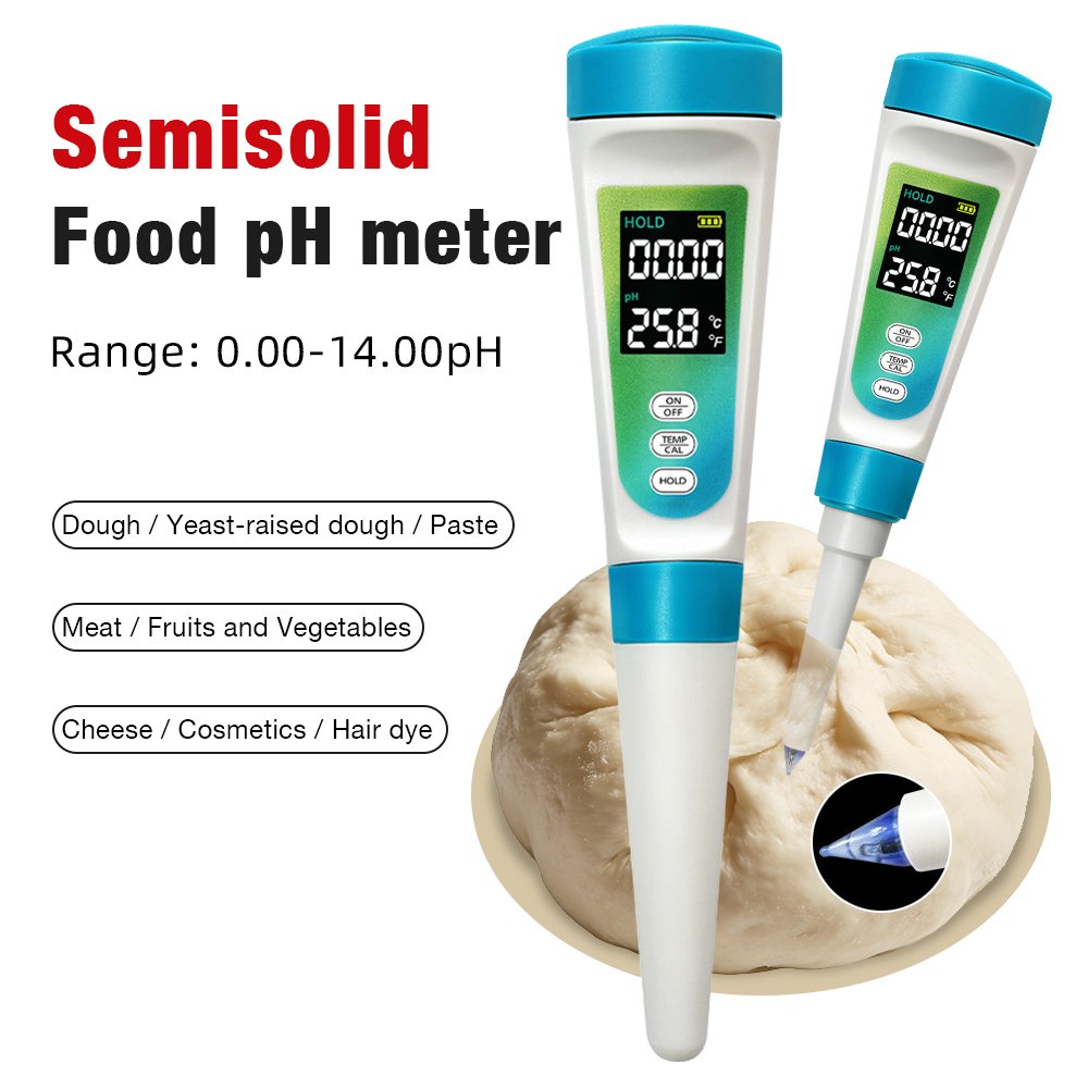 semi-solid food pH meter is a specialized instrument designed to accurately measure the acidity or alkalinity (pH level) in viscous, pasty, or non-liquid food products. Unlike standard pH meters for liquids, it features a robust, spear-type or flat-surface electrode that can pierce or directly contact samples like cheese, yoghurt, baby food, purees, meats, and doughs.