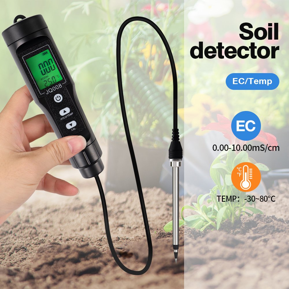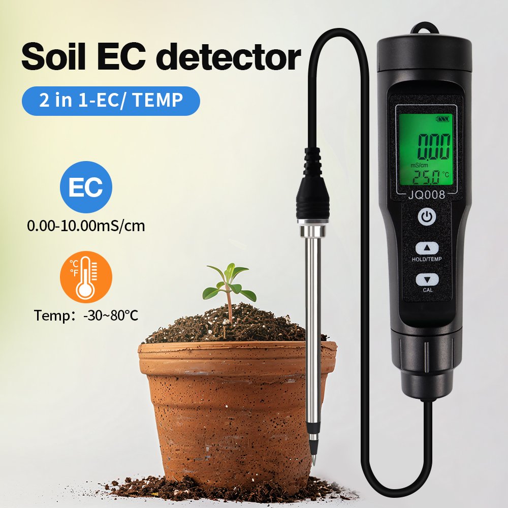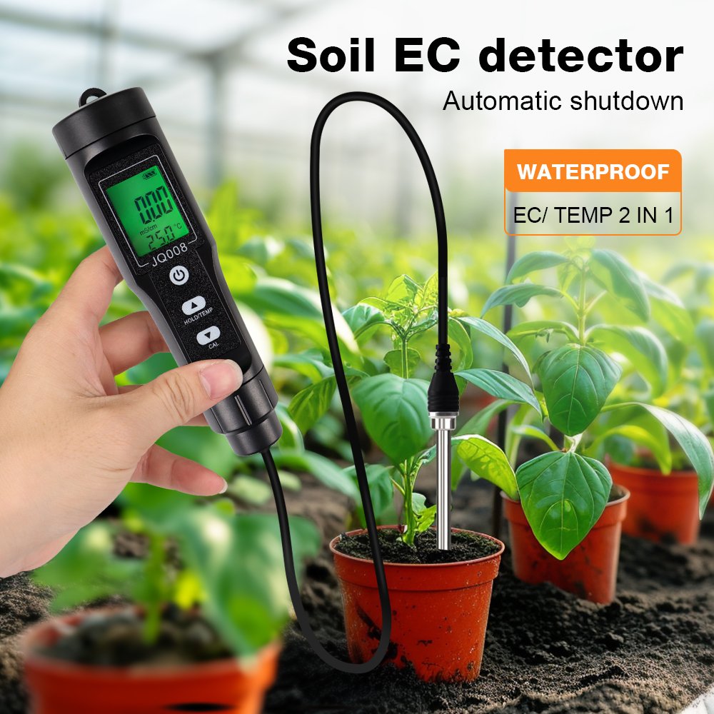 This Soil EC/TEMP Tester is a practical, handheld meter designed to accurately measure soil electrical conductivity (EC) and temperature in real time. It helps farmers, gardeners, and agricultural researchers monitor soil salinity and nutrient availability quickly without laboratory equipment.