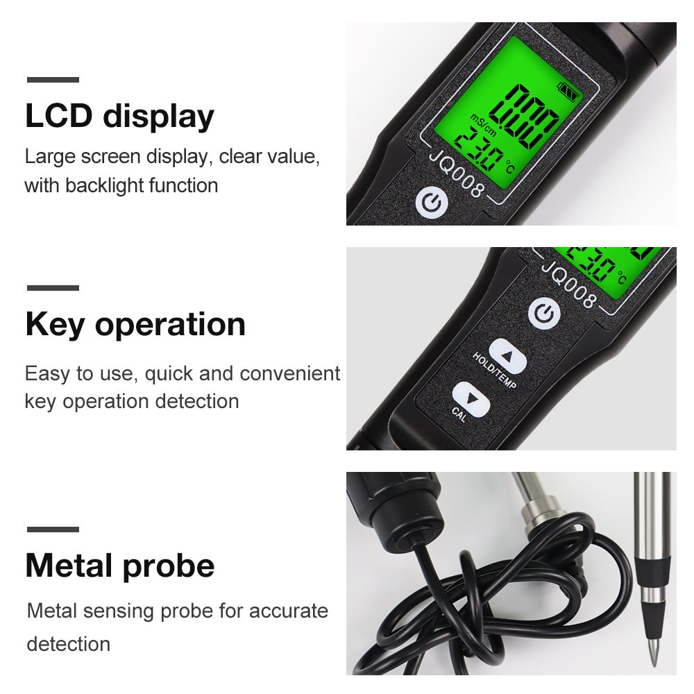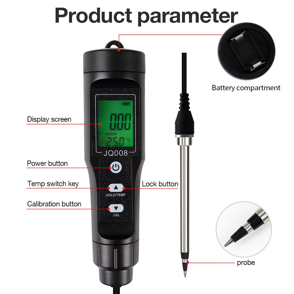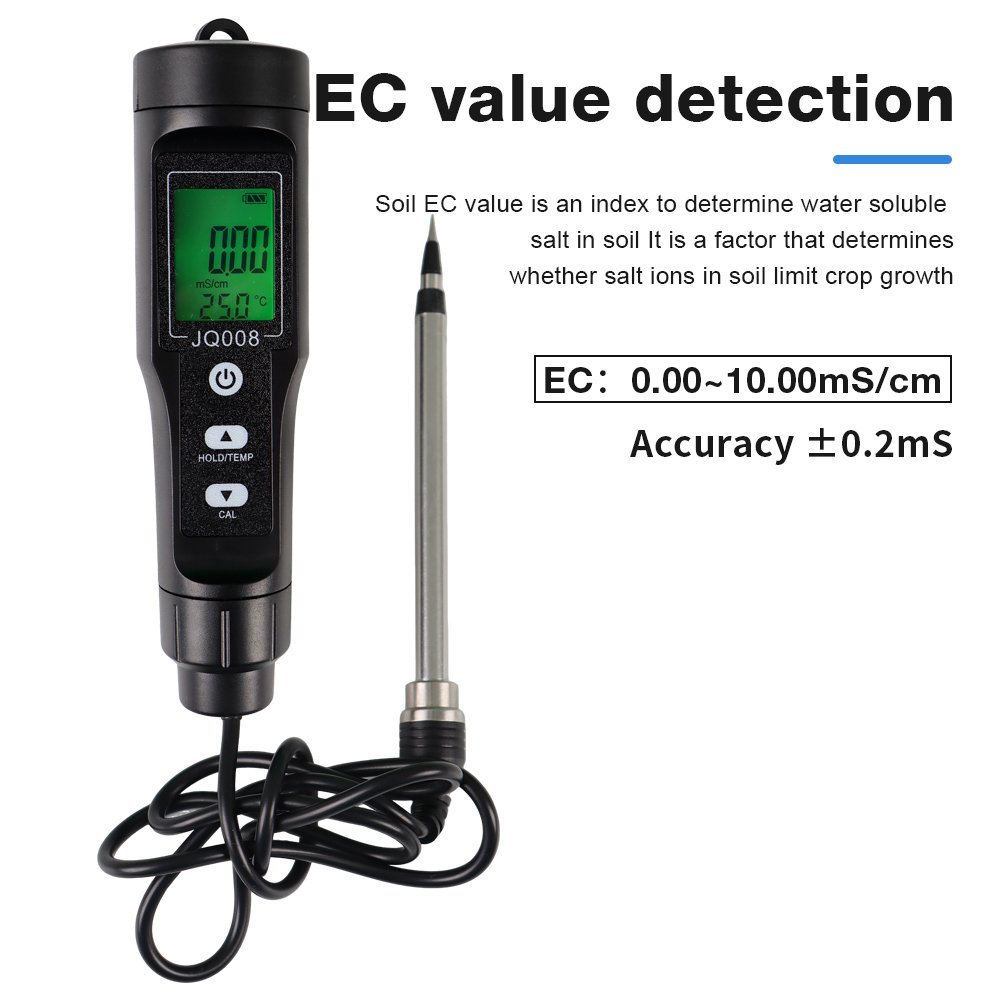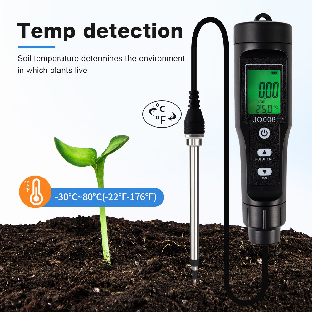 This Soil EC/TEMP Tester is a practical, handheld meter designed to accurately measure soil electrical conductivity (EC) and temperature in real time. It helps farmers, gardeners, and agricultural researchers monitor soil salinity and nutrient availability quickly without laboratory equipment.