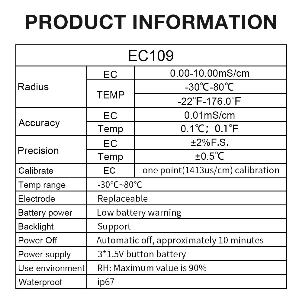 Featuring high‑sensitivity probes, the tester delivers stable readings for both indoor planting and outdoor field use. Its compact, lightweight design ensures easy portability and one‑hand operation. With clear digital display, users can instantly check soil conditions to adjust irrigation, fertilization, and planting strategies.