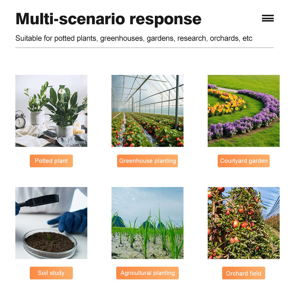 The device supports wide application in farmlands, lawns, greenhouses, horticulture, and scientific research. It requires low maintenance, no complex calibration, and helps improve crop health, yield, and resource efficiency.