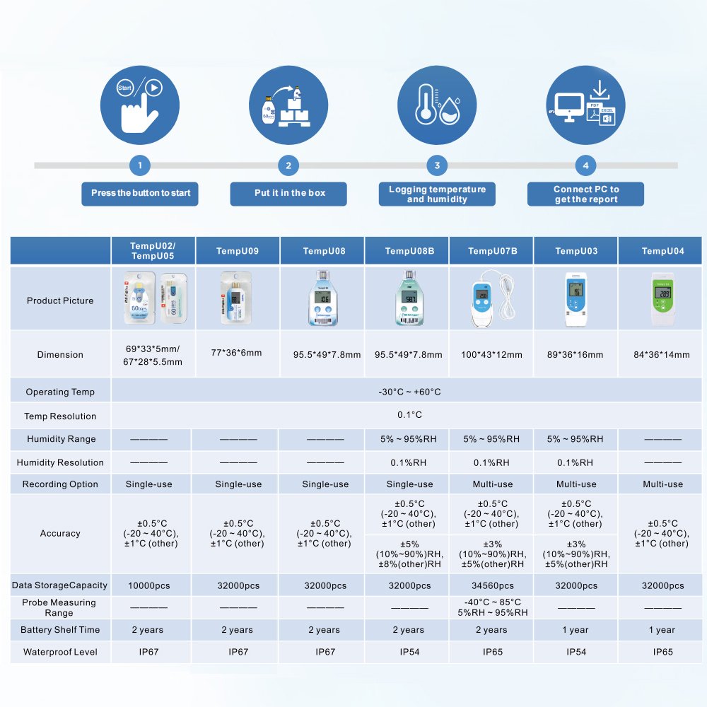 Pre-configured for ease of use, the tempU09 is ready to monitor immediately upon receipt. It typically offers a monitoring duration tailored to specific logistics needs, such as 30, 60, or 90 days, continuously recording temperature data at fixed intervals. Its high-precision sensor provides accurate measurements within a standard range of -30°C to +70°C, making it ideal for a wide array of products, from perishable foods and pharmaceuticals to chemicals. The robust, minimalist design is both lightweight and durable, capable of withstanding the rigors of transportation.